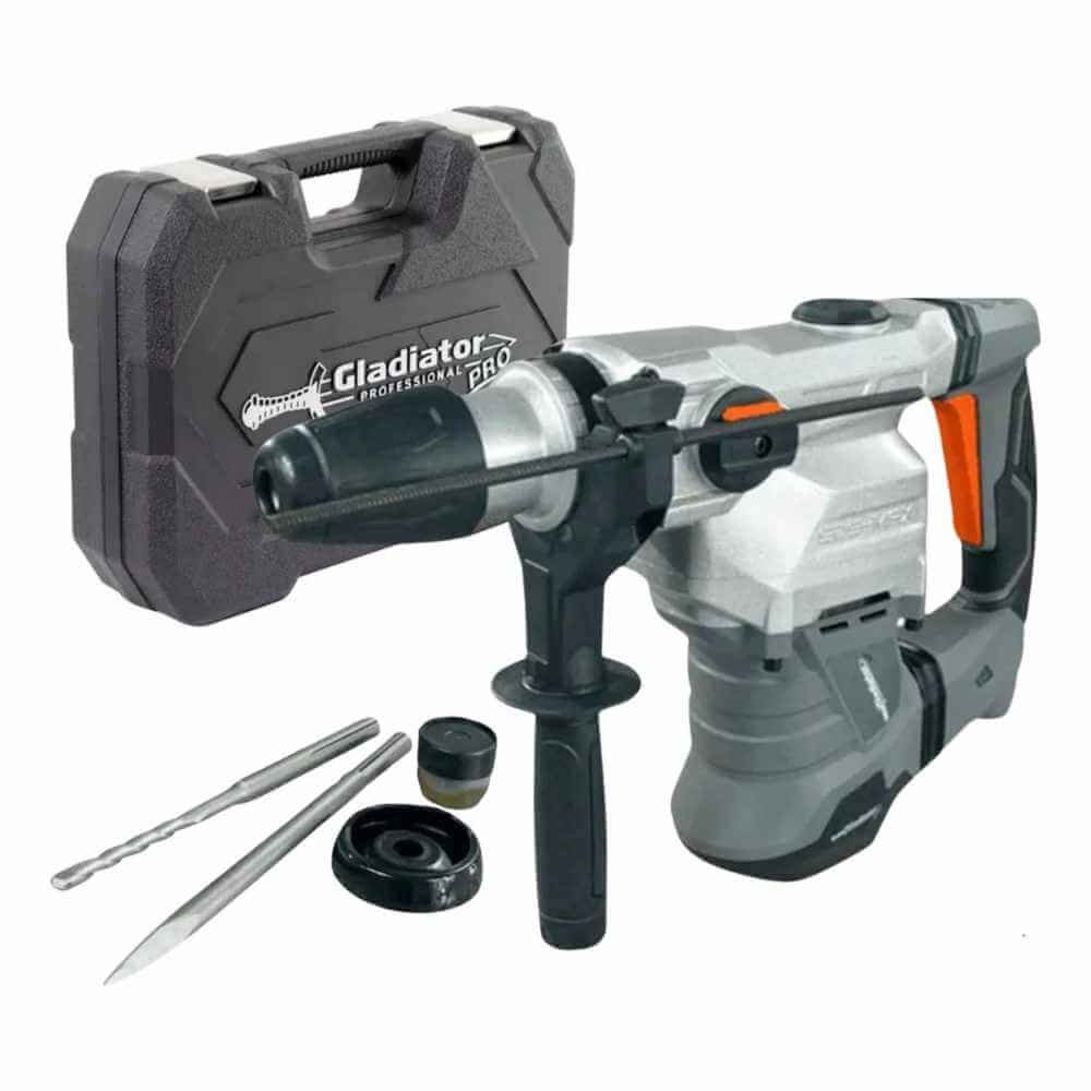 El Gladiator RM 840 es un rotomartillo profesional equipado para perforar y demoler con eficacia en concreto, ladrillo o piedra. Su encastre SDS Max permite un cambio de accesorios rápido y seguro, ideal para trabajos exigentes de construcción o remodelación.